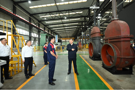 2025年7月7日至8日,中共中央总书记、国家主席、中央军委主席习近平在山西考察。这是7日下午,习近平在阳泉阀门股份有限公司考察。新华社记者 谢环驰 摄