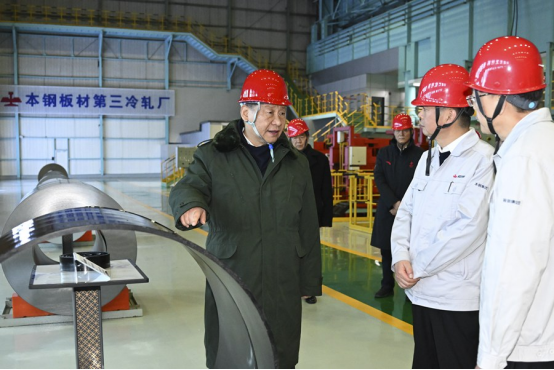 2025年1月22日至24日,中共中央总书记、国家主席、中央军委主席习近平冒着严寒来到辽宁,看望慰问基层干部群众。这是23日下午,习近平在本溪市考察本钢板材冷轧总厂第三冷轧厂车间。新华社记者 谢环驰 摄